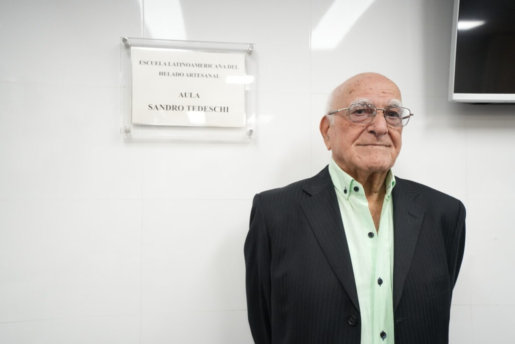 Durante la ceremonia, también se llevó a cabo un emotivo descubrimiento de placas homenaje en las dos aulas principales de la Escuela, que llevan los nombres de Sandro Tedeschi y Federico Bortolot, grandes referentes del sector. El homenaje fue compartido junto a sus familiares y colegas, en un momento de profunda emoción que celebró su legado y el impacto que ambos tuvieron en la historia del Helado Artesanal argentino.