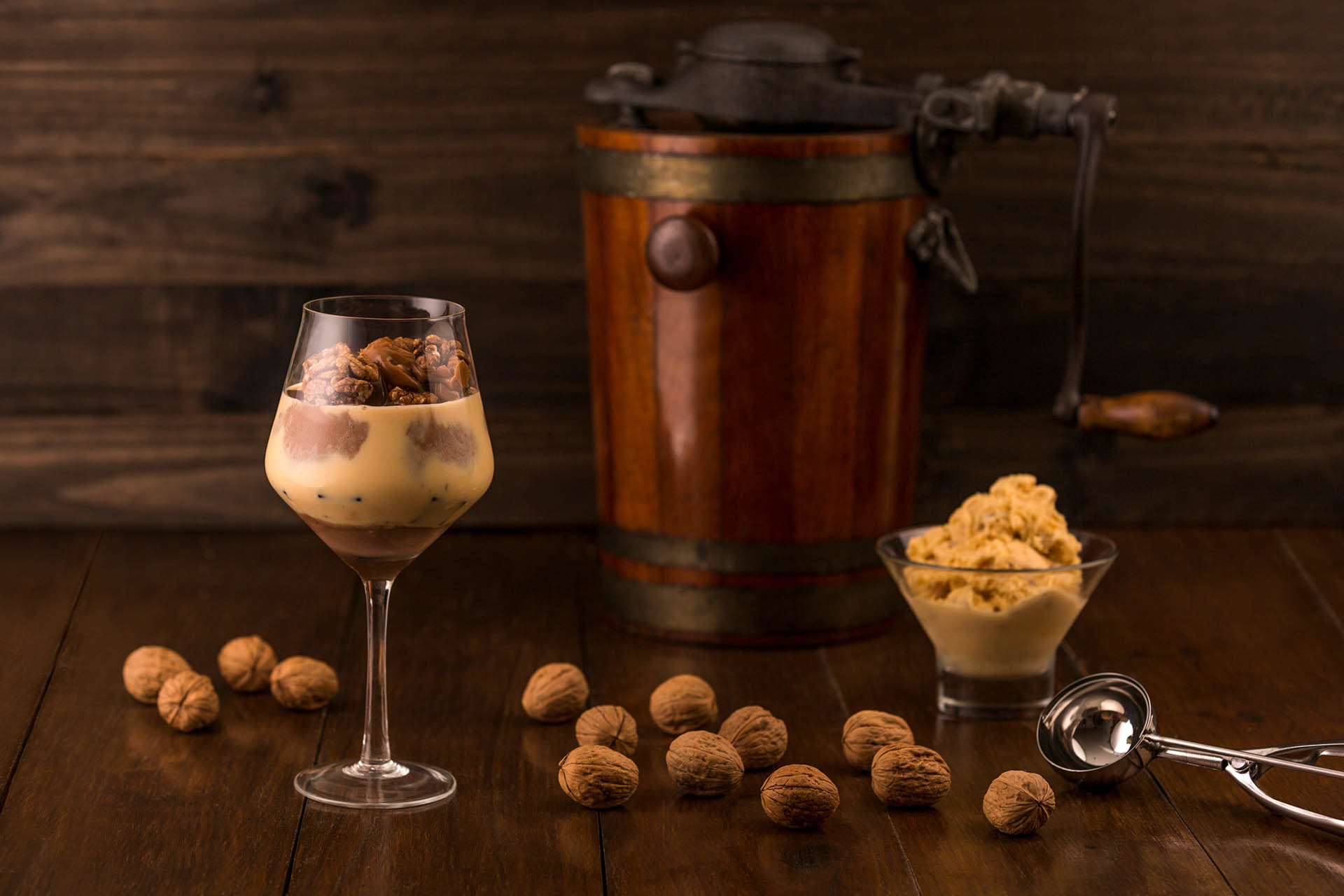 - Mezclar helado de chocolate, helado de crema rusa y ron añejo.